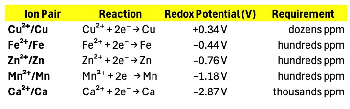 Khái niệm thế oxi hóa-khử cung cấp một lăng kính hữu ích để hiểu tại sao một số khoáng chỉ cần liều rất nhỏ, và mỗi dạng và tính phản ứng của chúng có lợi hay gây rủi ro như thế nào. Trường hợp của đồng cho thấy, nhu cầu tự nhiên chỉ 10 – 20 ppm không phải ngẫu nhiên, mà là kết quả của hàng triệu năm tiến hóa nhằm cân bằng giữa hiệu quả và an toàn.