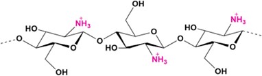 Chitosan là một polyme sinh học mang điện tích dương, tương tác trực tiếp với bề mặt vi khuẩn mang điện tích âm. Tương tác tĩnh điện này làm tăng tính thấm của màng tế bào và giảm khả năng sống sót của vi khuẩn, đặc biệt hiệu quả đối với vi khuẩn gram âm như E. coli và Salmonella.
